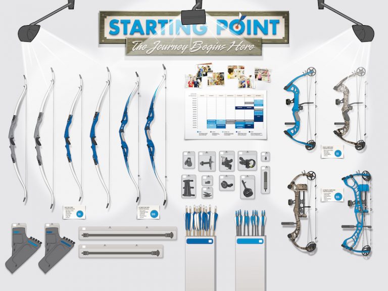 Phillips segments his shop by archery categories to help sell products and better understand his customers. His eye-catching displays engage shoppers, make shopping easier, and encourage add-on purchases.
